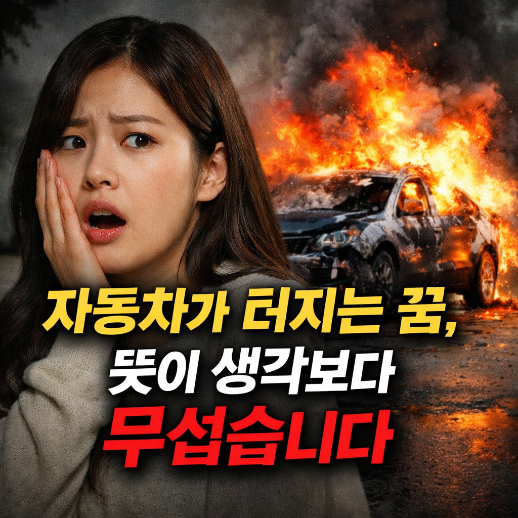 자동차가 폭발하는 꿈 해몽이 궁금하신가요? 자동차 폭발 꿈 해몽은 스트레스, 감정의 폭발, 예상 못 한 변화와 인간관계 갈등을 암시할 수 있습니다. 상황별 의미와 현실 해석까지 쉽게 정리했습니다. 자동차가 폭발하는 꿈, 왜 이렇게 강하게 남을까자동차가 폭발하는 꿈은 매우 강한 꿈입니다.한 번 꾸면 오래 기억에 남습니다.장면이 무섭고 감정도 크게 흔들리기 때문입니다.보통 자동차는 꿈에서 내 삶의 방향을 뜻합니다.내가 가는 길, 현재의 상황, 통제력도 함께 상징합니다.그런데 그 자동차가 폭발했다면 의미는 달라집니다.이때의 폭발은 단순한 장면이 아닙니다.쌓인 감정이 터지는 모습일 수 있습니다.현실의 압박이 한계에 가까워졌다는 신호일 수도 있습니다.자동차가 상징하는 것삶의 방향현재의 목표책임감과 통제력사회적 위..